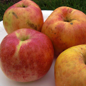 - mittelgroß bis groß, breitkugelig, gelb, rötlich gestreift, sehr mürbe, feinweinig, edel gewürzt, süßsäuerlich